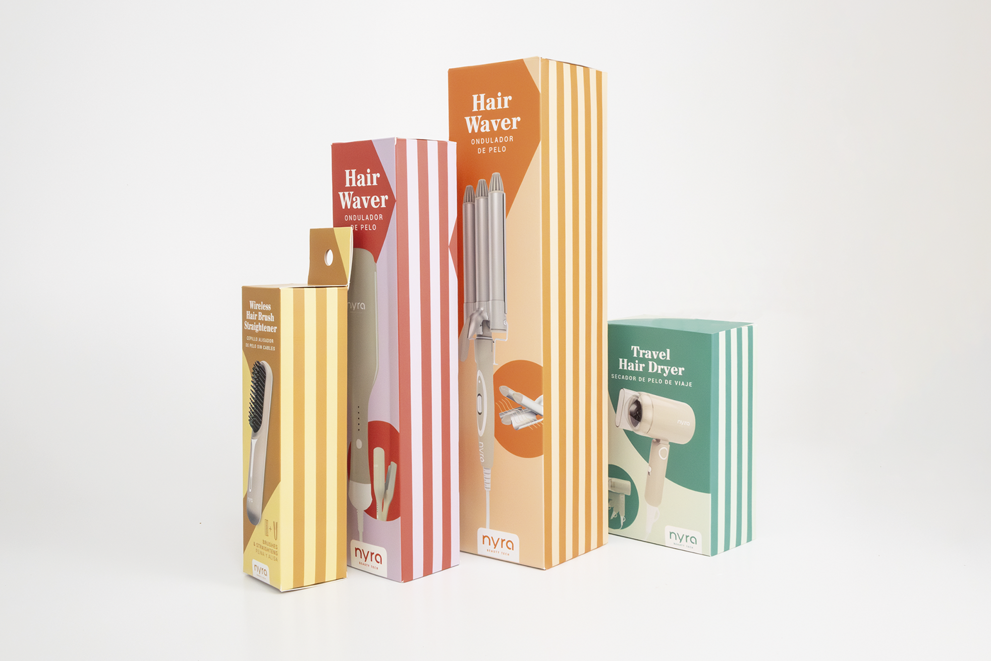 Desde Dostintas nos encargamos de dar forma a todo el universo de marca: creamos el nombre, diseñamos el logotipo, definimos la apariencia de los productos, el sistema visual y el packaging. El resultado: una identidad fresca, cuidada y flexible, que conecta con un público que busca tecnología accesible, estética y bienestar.
